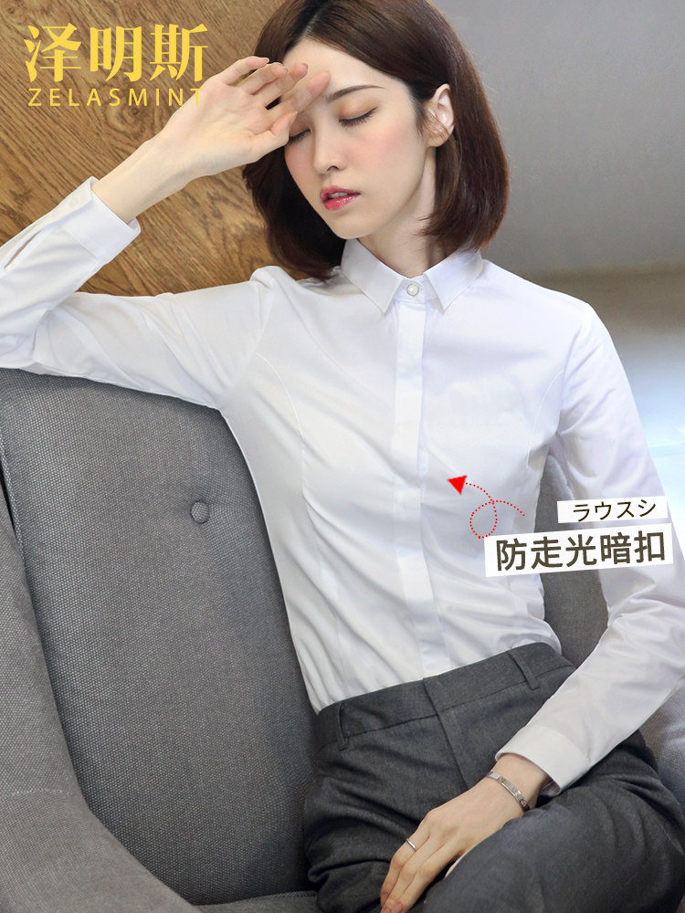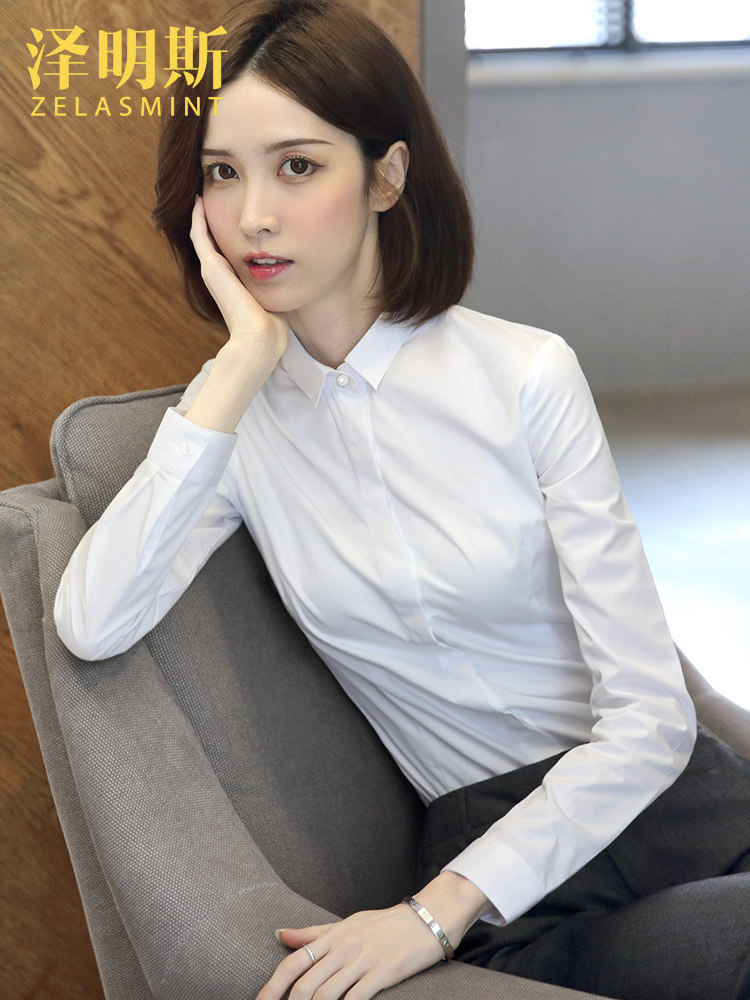 Zemins pure cotton white shirt women's professional formal wear 2021 spring and autumn workplace wear job interview tooling work shirt