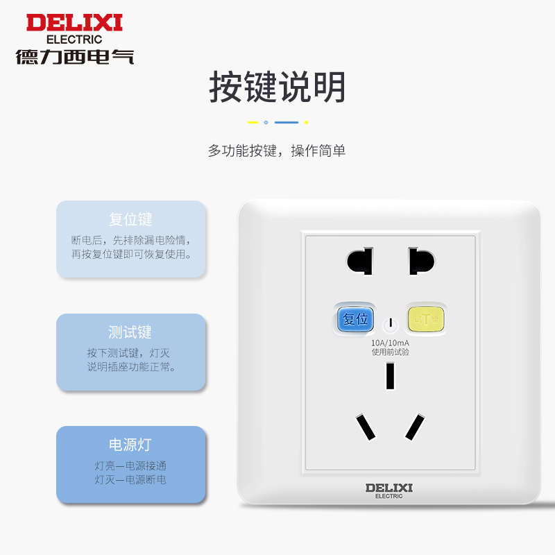 Delixi 32A air conditioning leakage protection switch air switch 16A water heater plug 3P household 86 type socket