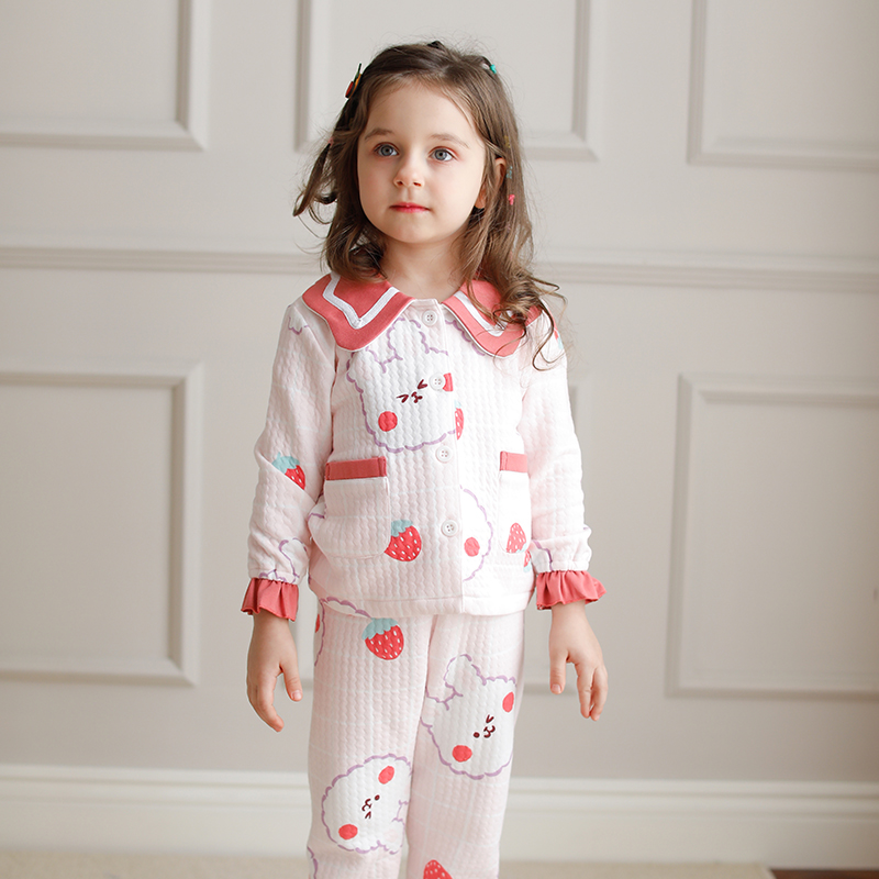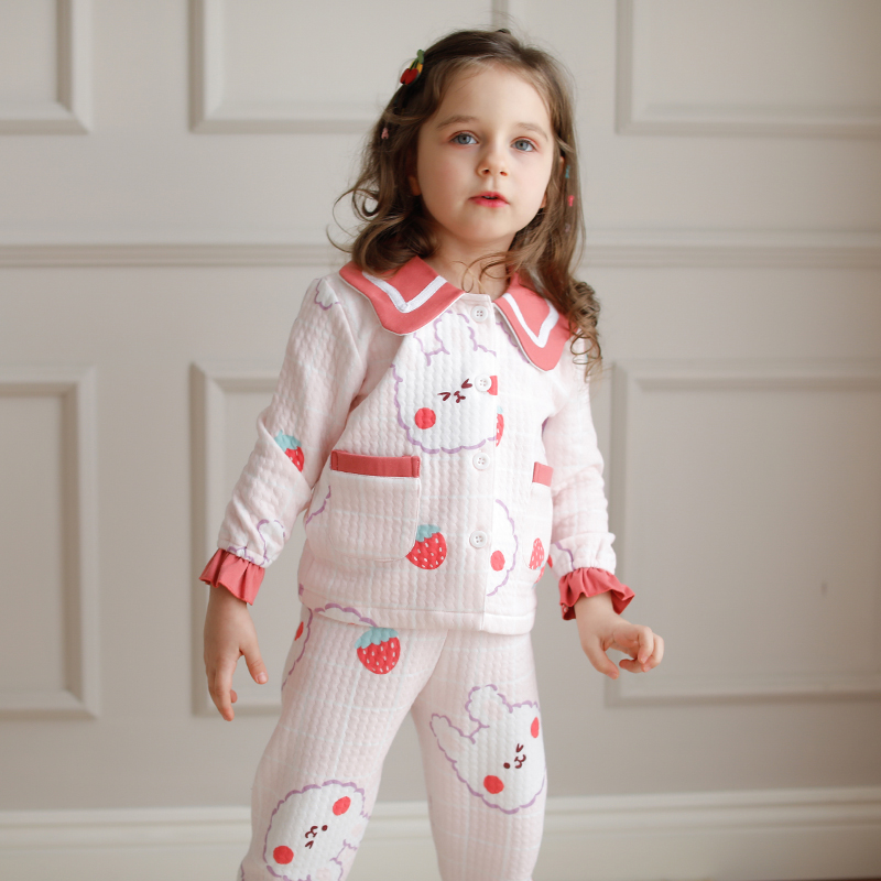 Children's pajamas spring and autumn pure cotton girls baby home clothing suit girls in the big child thicker pajamas winter