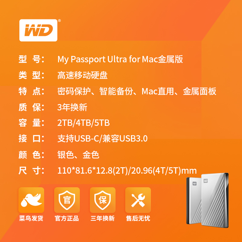 WD Western Digital portable hard drive 2tb My Passport Ultra for Mac type-c Apple