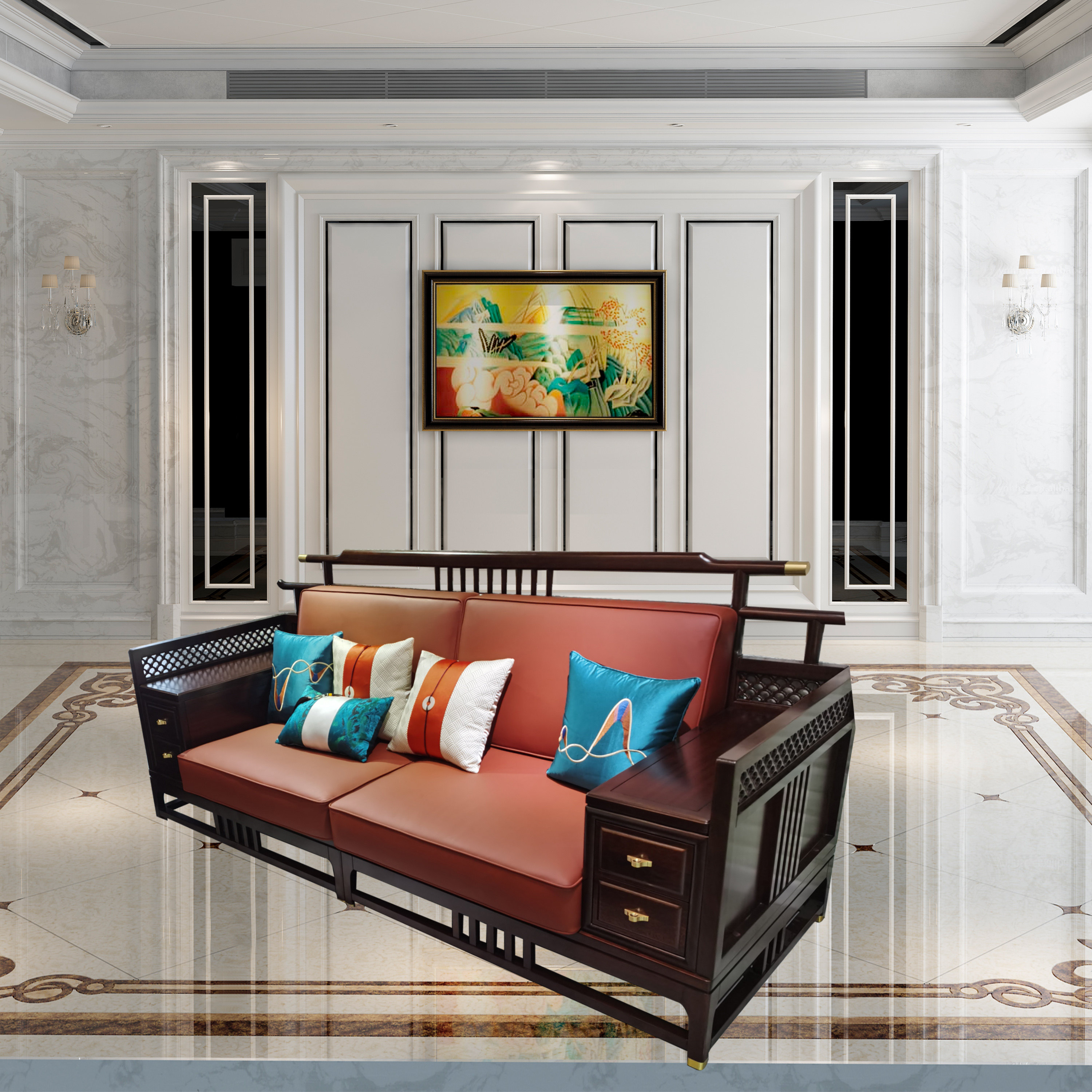 Single position (Ukim wood) trio (Ukim wood) Leisure chair Three sets in the figure (Ukim wood) big tea table (Ukim wood) TV cabinet (Ukim wood) 1 3 Leisure three tea table TV