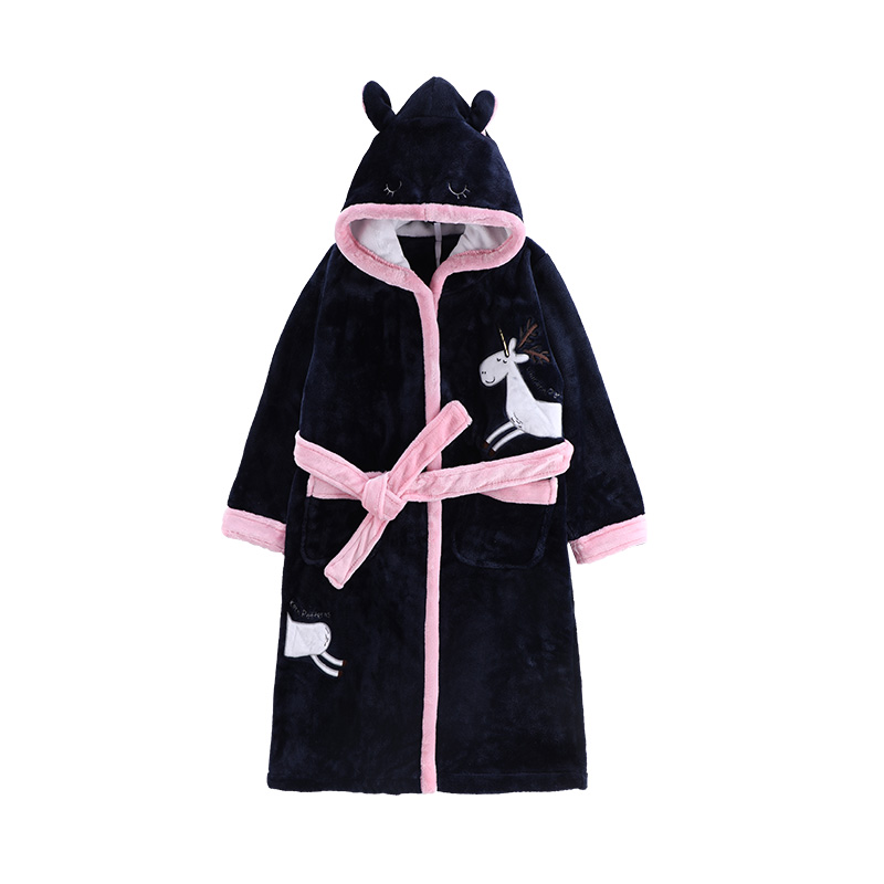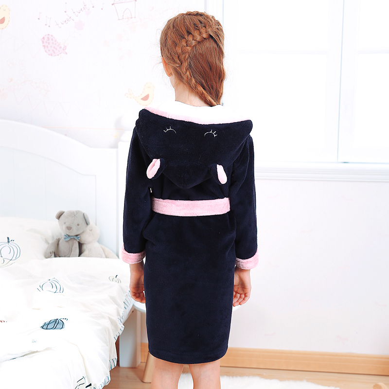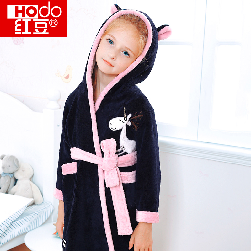 Red Bean Children Bathrobe Girl Cute Flannel Suede Cap Hit with Coral Suede Winter Warm Thickened Sleeping Robe