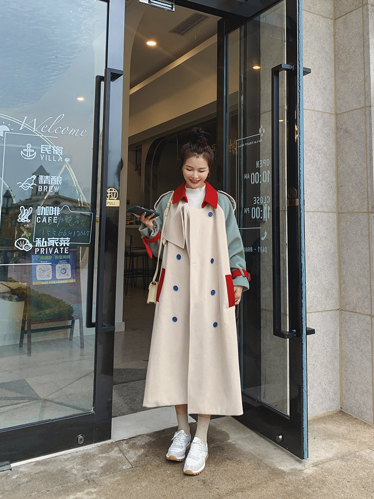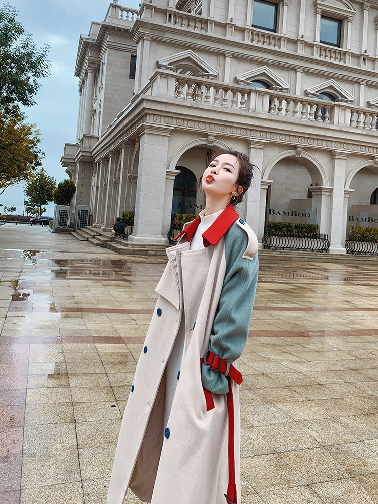 Lecea Alice Mao's jacket Women's medium long version 2022 Winter new Inn Wind splicing female windcoat Grand coat