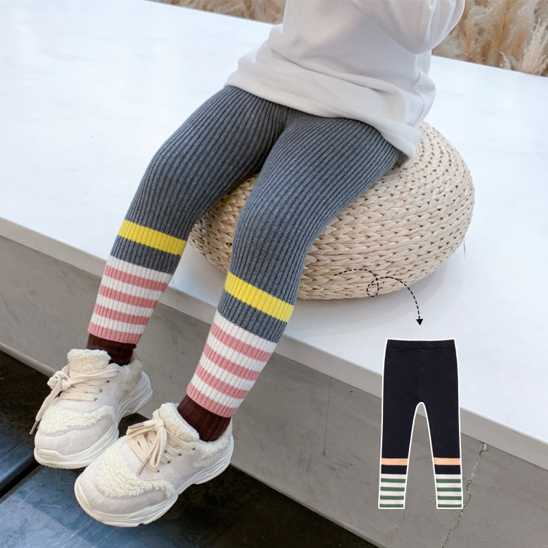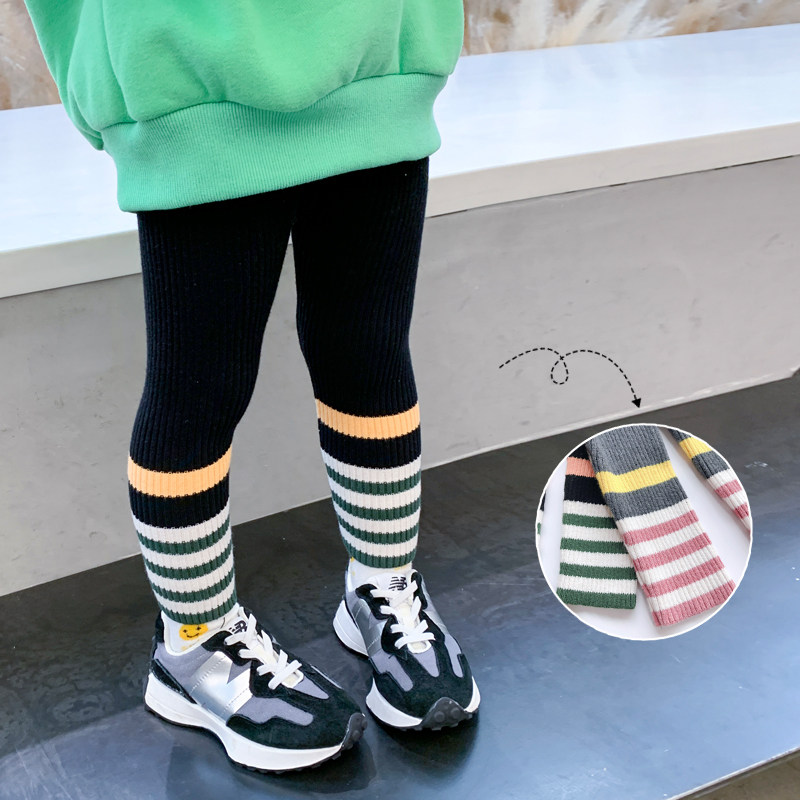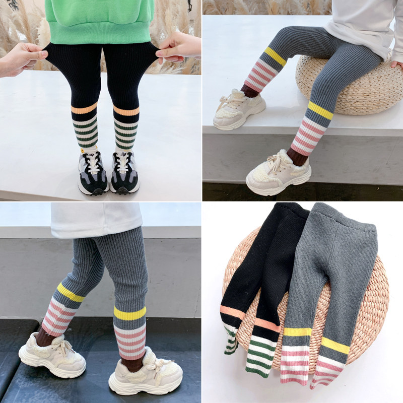 Girl Inside Lap Pants 2022 New Autumn Winter Clothing Outwear Foreign Pie Striped Sweatpants Children Add Suede Thickened Trousers