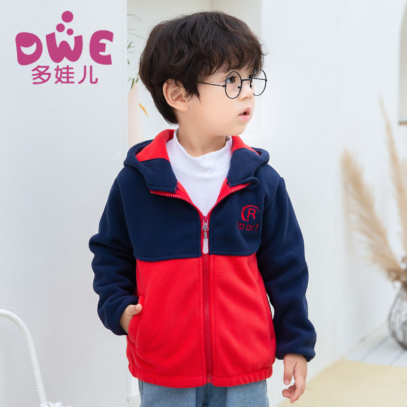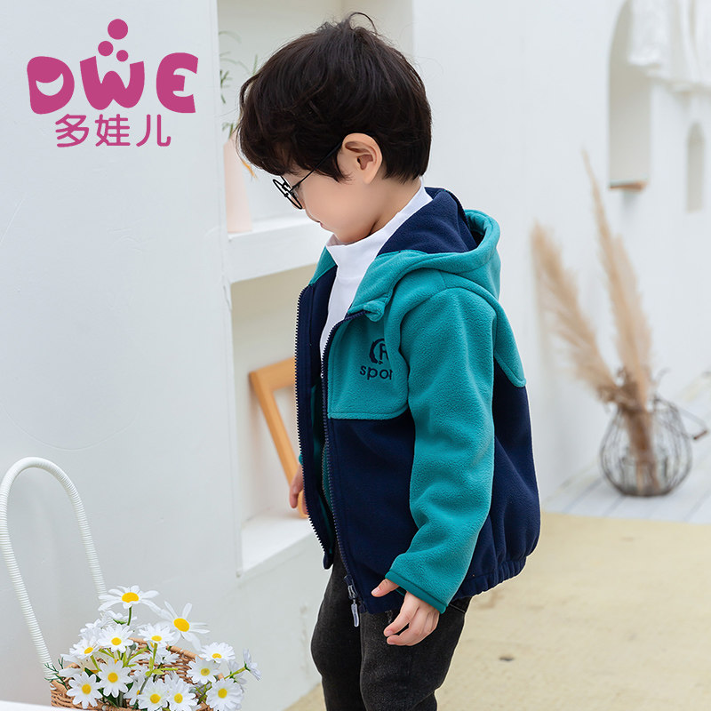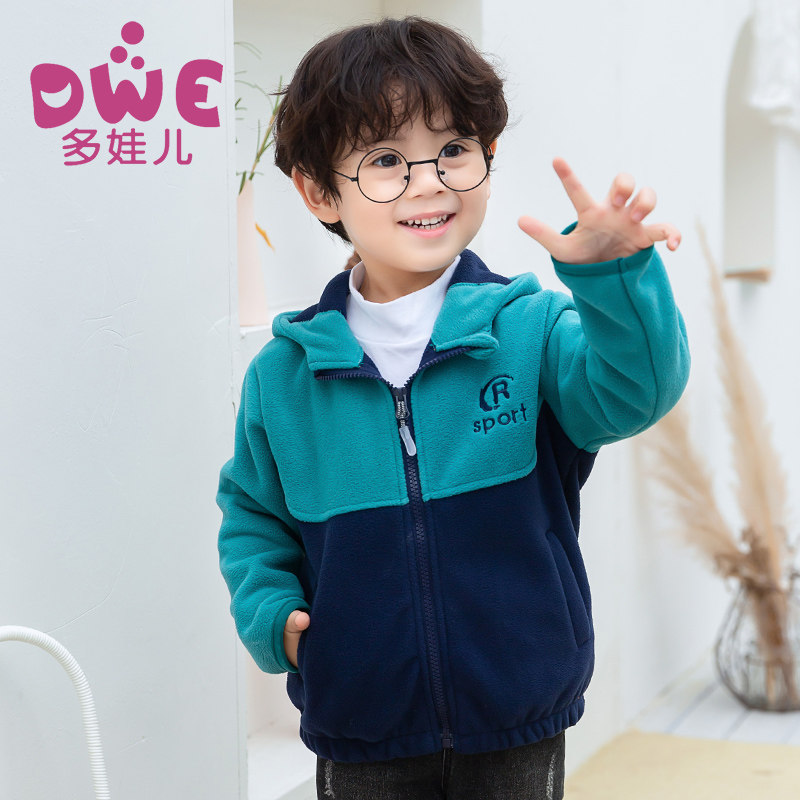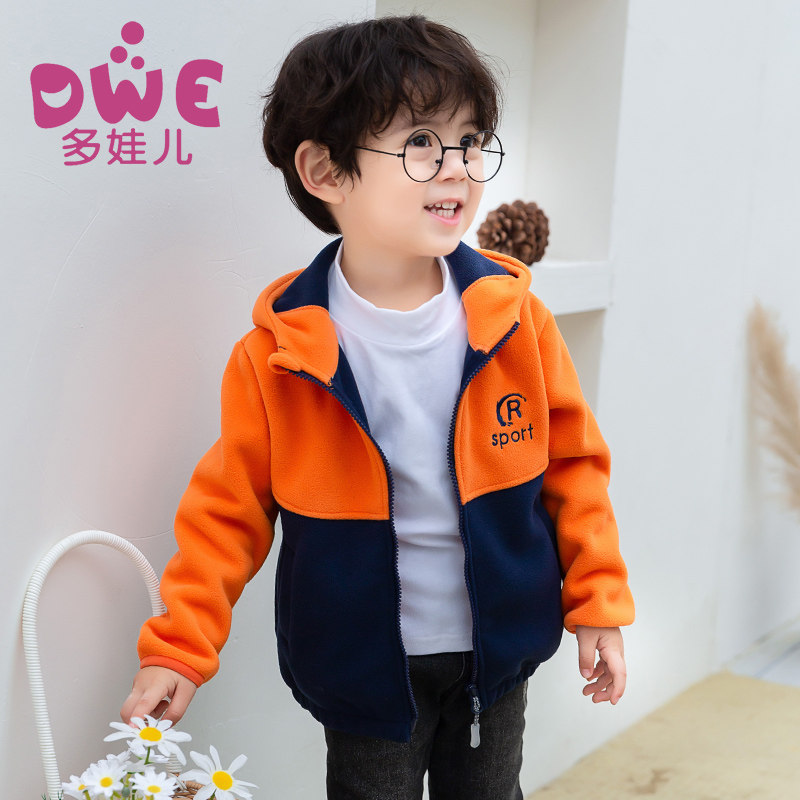 Boys fleece hooded jacket baby foreign style polar fleece splicing sweater spring and autumn clothing 2023 spring new children's clothing