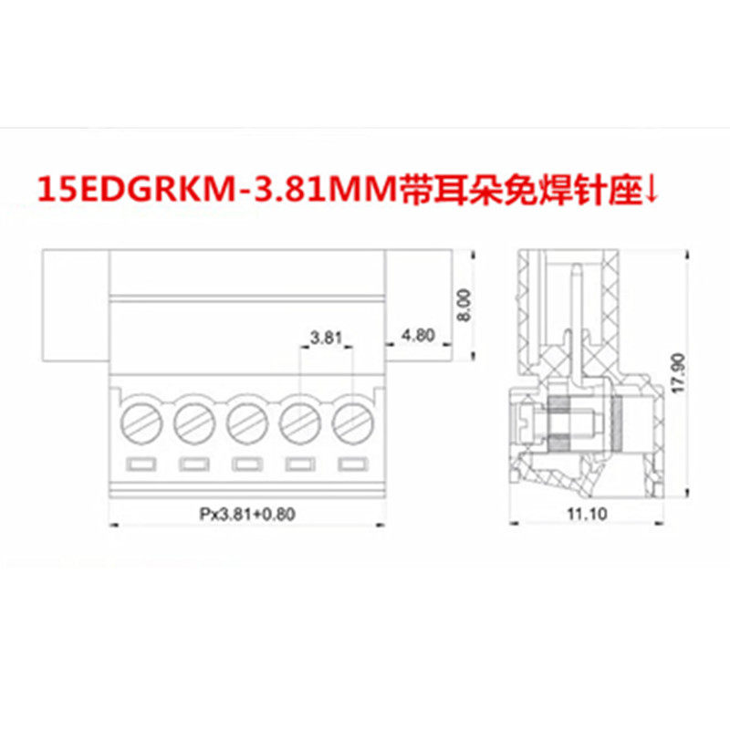 15EDGWC-3.81 2EDGWC-5.08 Wall-free solder-free wire terminals Plug in butt terminals with ears