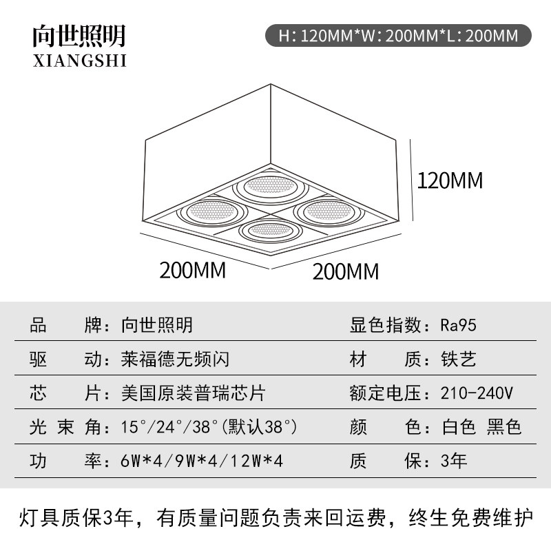 Xiangshi Lighting installed four-head LED spotlight ceiling anti-glare downlight bold light high color rendering without main light lighting