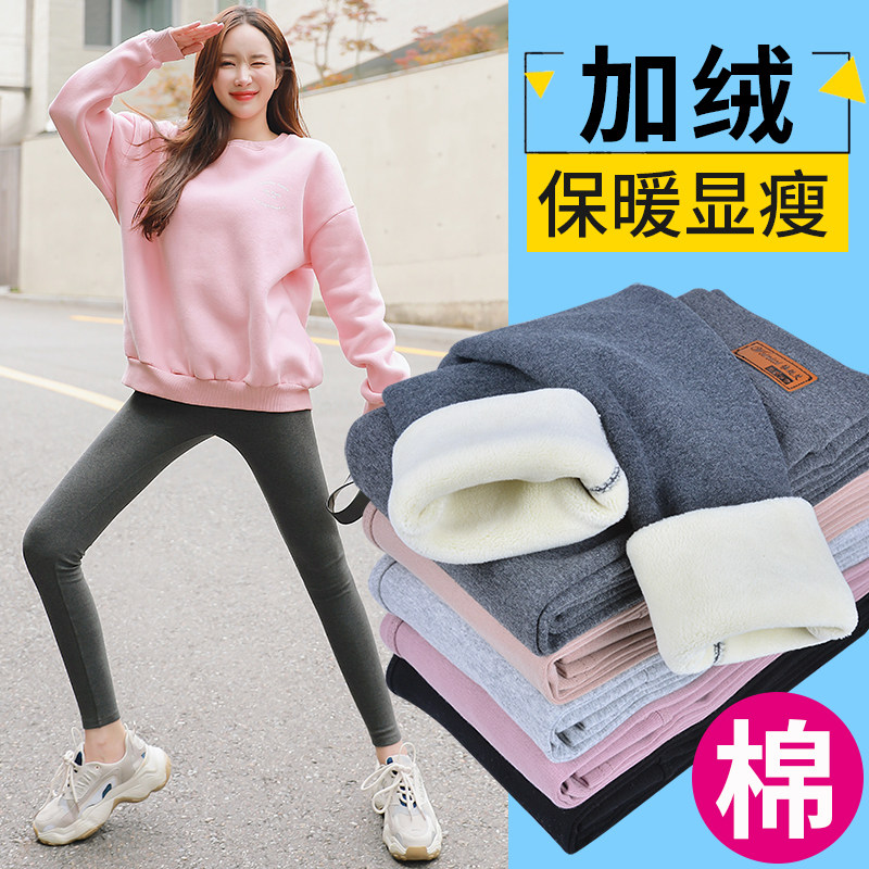 Underwear women's spring, autumn and winter thin section black and gray cotton tight-fitting warm thickening plus velvet large size sanitary pants to wear inside and outside