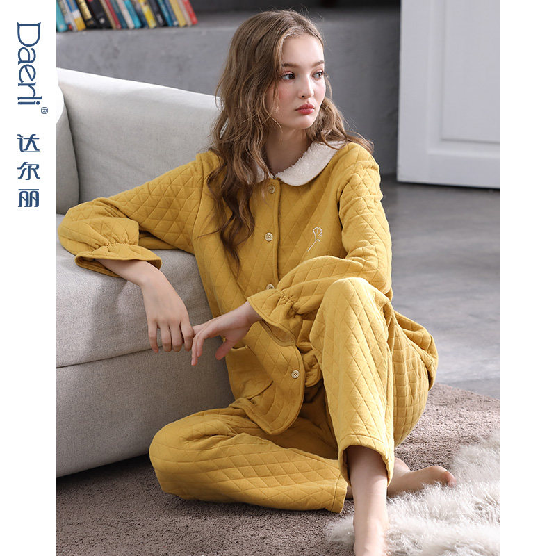 Dalli pajamas women's autumn and winter interlayer warm quilted long-sleeved flower bud sleeves thickened cotton cardigan jacket home service suit