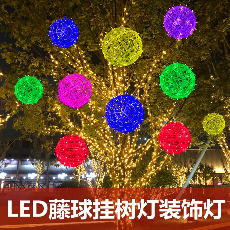 Led hanging tree rattan ball lamp round colored lights outdoor waterproof rattan tree light New Year string lights street brightening decorative lights-Taobao