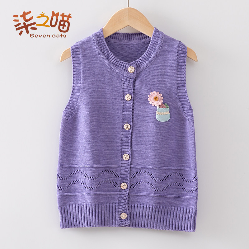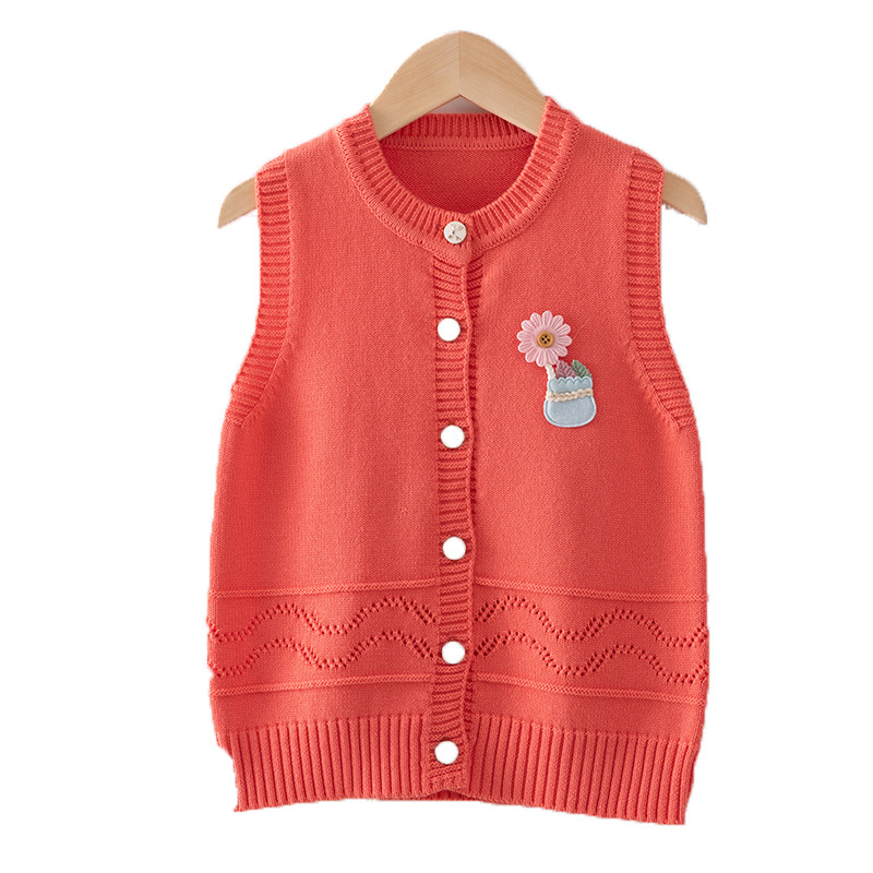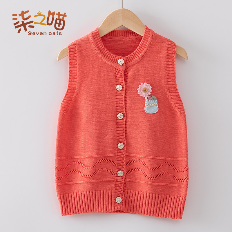 Girl knit waistcoat for children's sweater vest foreign pie CUHK Thickened Stitch Cardiovert Cardiovert baby wool coat jacket