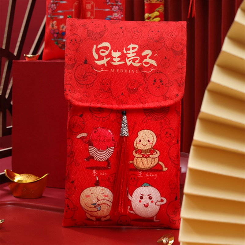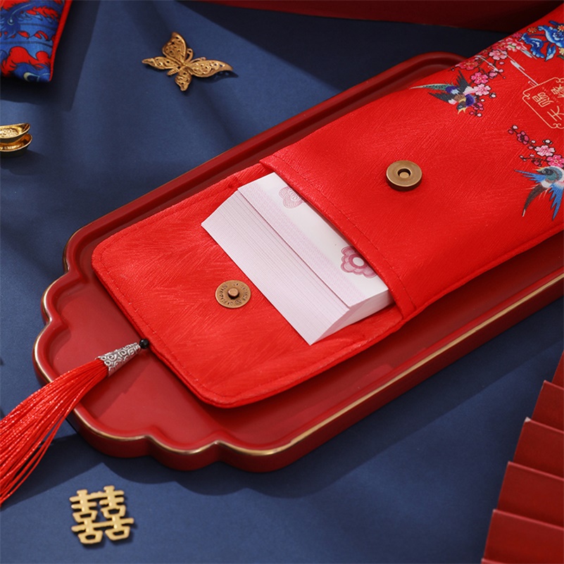 2022 original hand drawing of the red bag wedding wedding to the tea is a silk cloth gift red envelope