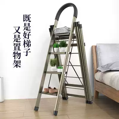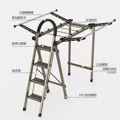 Clothes rack floor folding indoor with ladder dual-use household thickening telescopic multi-function clothes rack herringbone ladder