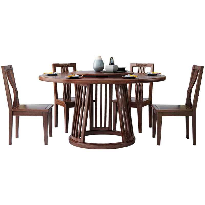 New Chinese Ukim Wood Solid Wood Round Table Dining Table And Chairs Combine Modern Zen Imagery Light Lavish Home Dining Room With Turntable Dining Table