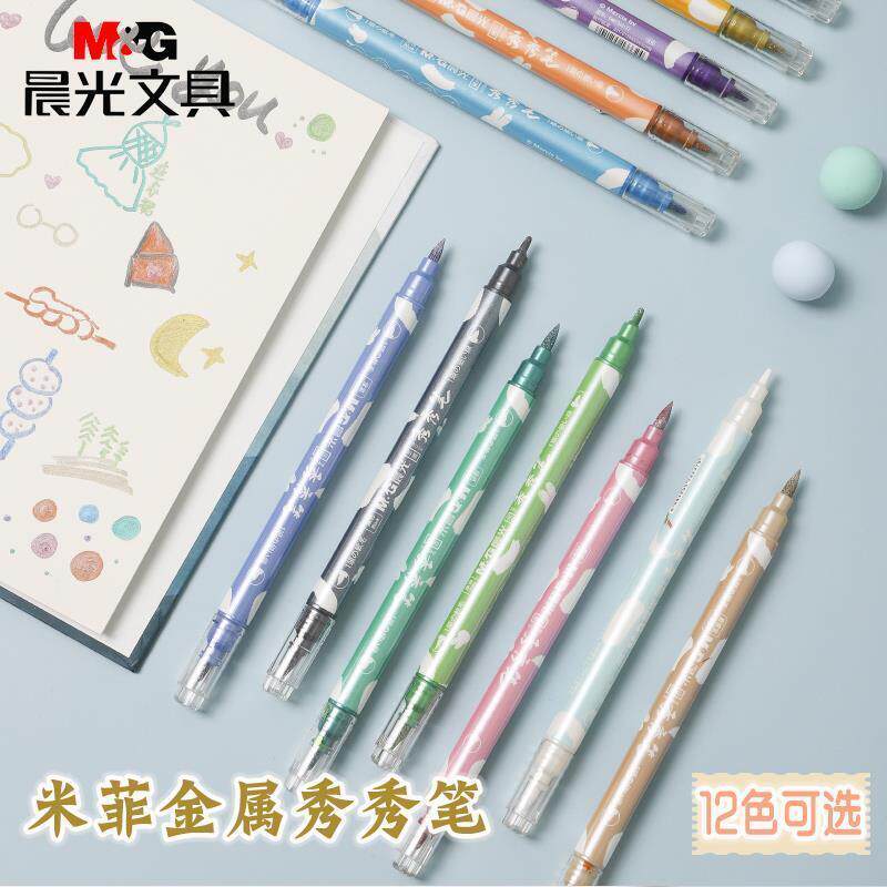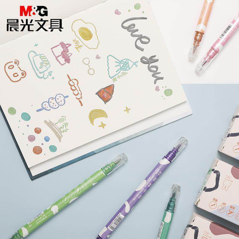 Morning light show pen Mifiquin belongs to show Lipen Hand ledger pen black paper Reflective Pen Star Pen student Painting pen Full color double head Fluorescent Pen Hand Drawing Pen Flash Pen Multi Color Water-based Pen