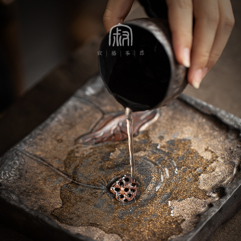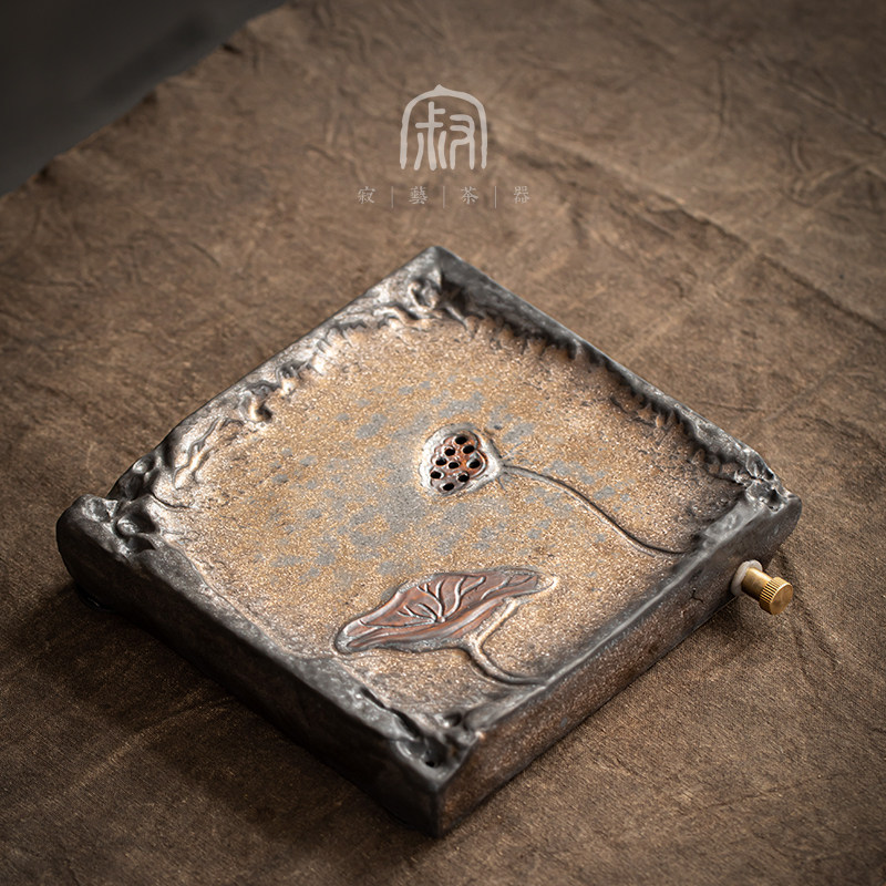 Antique gilded pot bearing tray creative retro tea room home drainage water storage round square lotus tea table tea tray