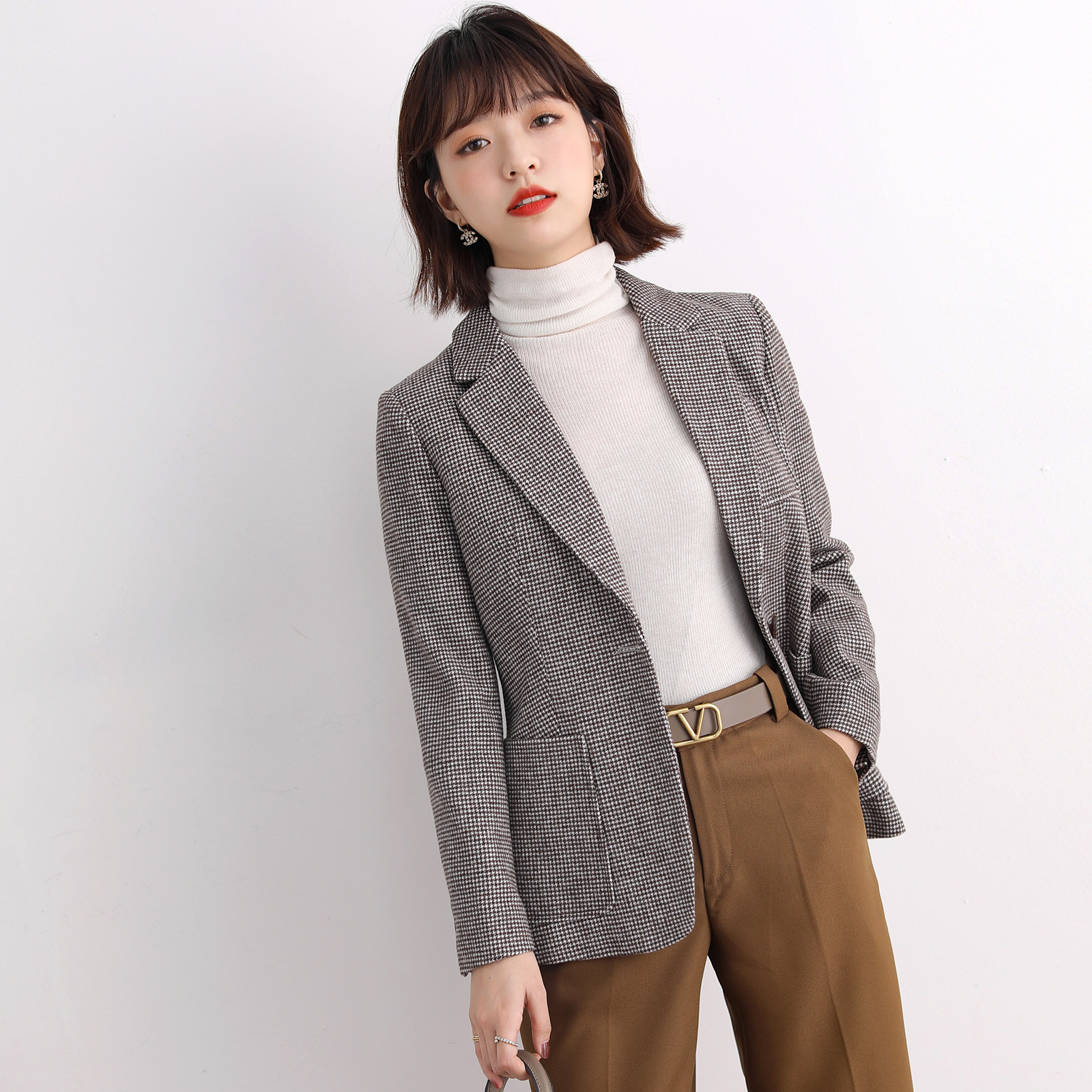 FENPERATE 2022 autumn retro houndstooth commuter workplace all-match woolen plaid suit jacket women