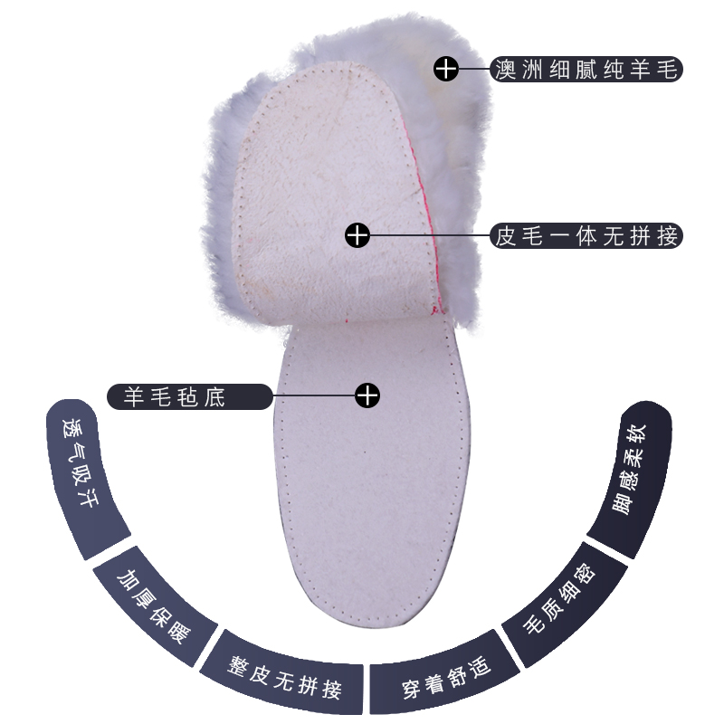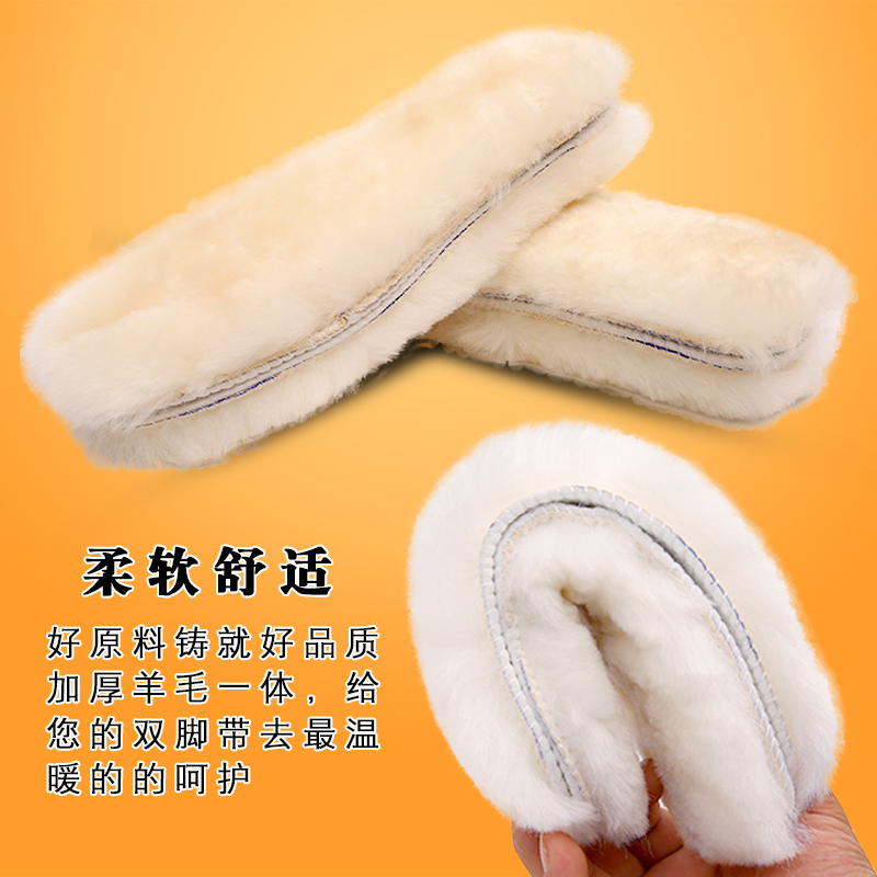 Real wool insole men and women winter warm thick velvet cold-proof snow boots sweat-absorbing breathable soft fur one insole