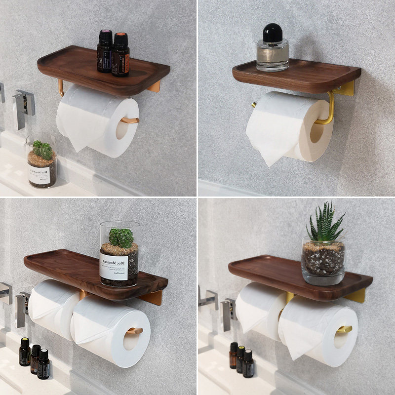Paper towel rack bathroom North American black walnut brass toilet paper roll solid wood bathroom mobile phone paper rack