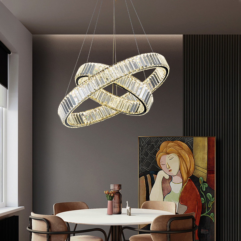 Light extravagant crystal living-room pendant light rear modern minimalist atmospheric annular personality net red home minimalist bedroom dining room lamp