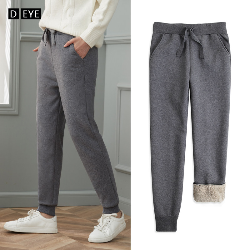 Fleece sports pants women's autumn and winter casual loose imitation lamb velvet warm pants thickened outerwear pure cotton gray cotton pants