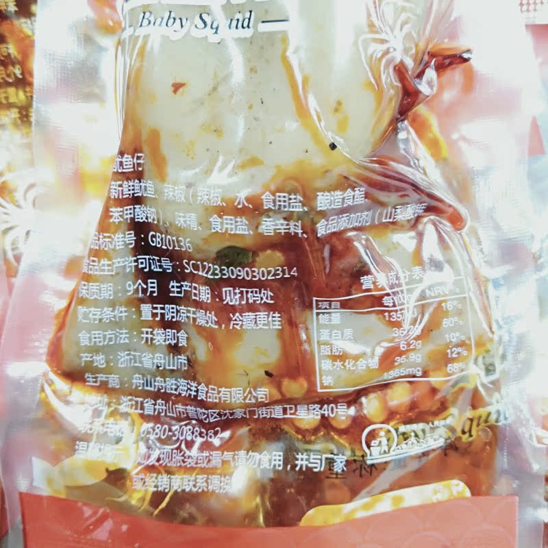 See the packaging of fresh squid peppers MSG salt, etc.