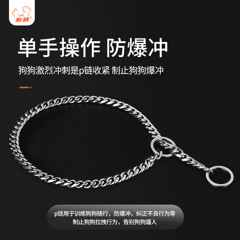 Training dog p chain explosion-proof punching dog chain Sub-medium large canine Stainless Steel Dog Chain Training Dog P Character Chain Traction Rope Dog Collar