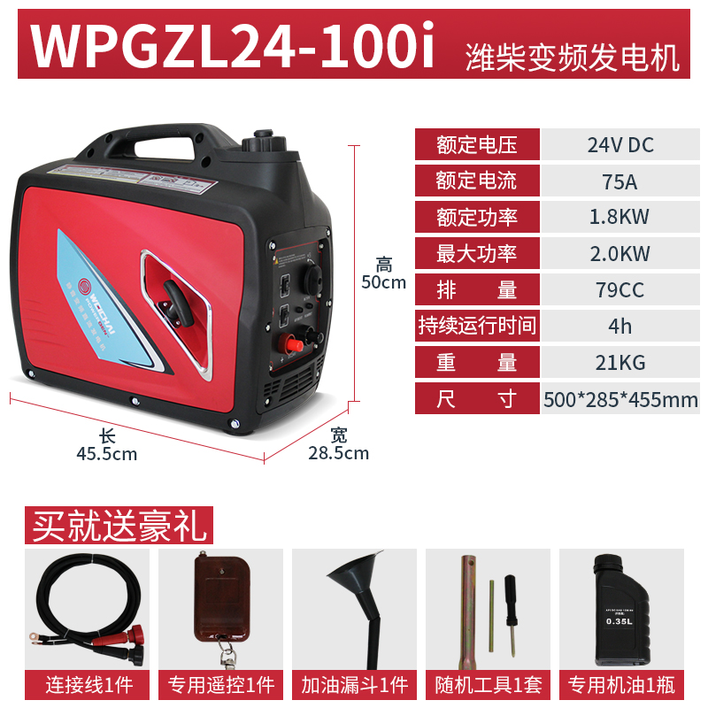 Weichai 24V generator 1 8KW DC gasoline minivan parking air conditioning charging vehicle low noise