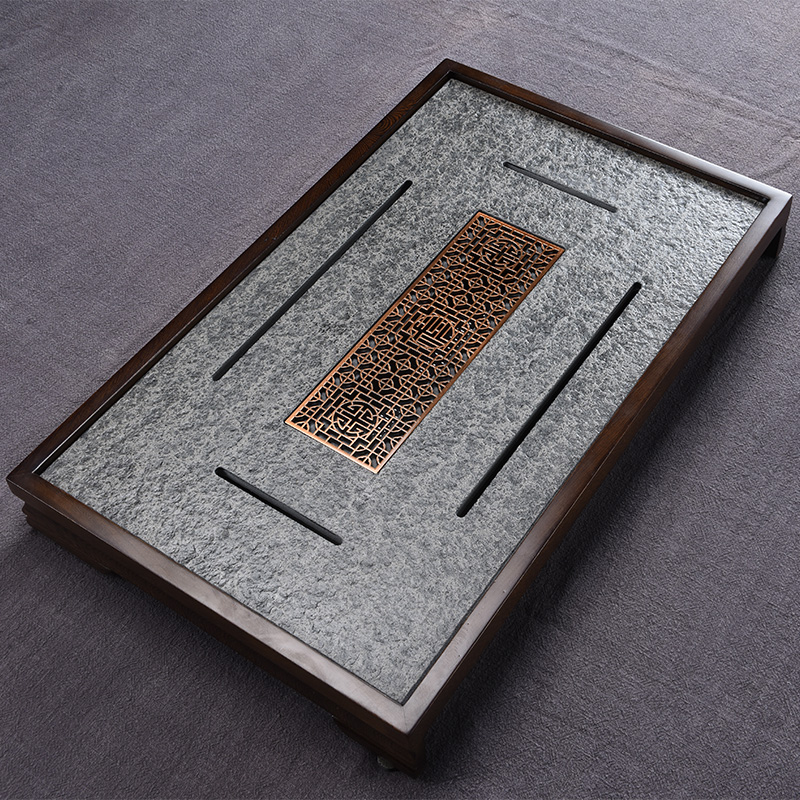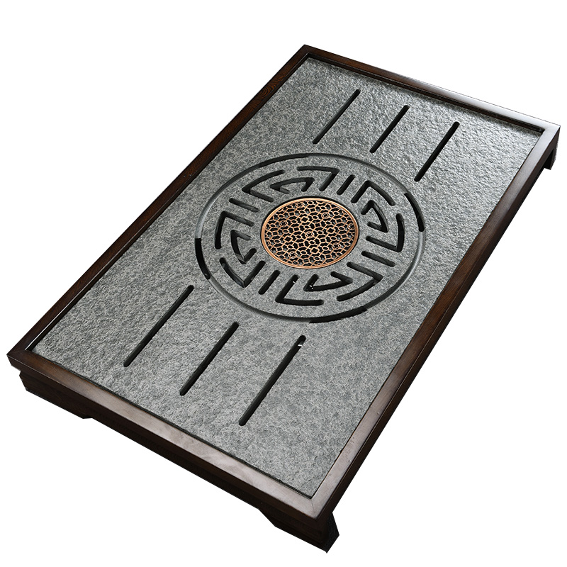Ugin stone tea tray home kung fu stone small water storage tray chicken wing wood ebony tea table solid wood asphalt tea sea
