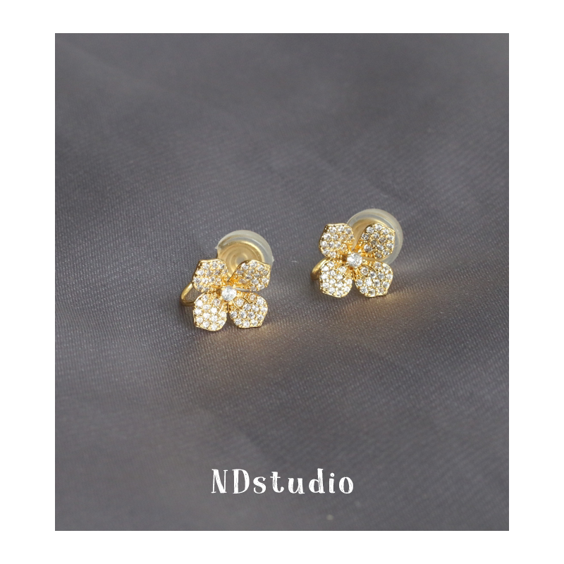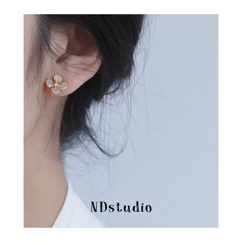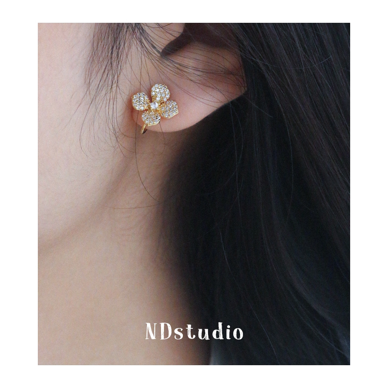 ND full drill lucky grass small fragrant wind shiny zircon high-grade sense no earhole without pain silicone mosquito coil ear clip
