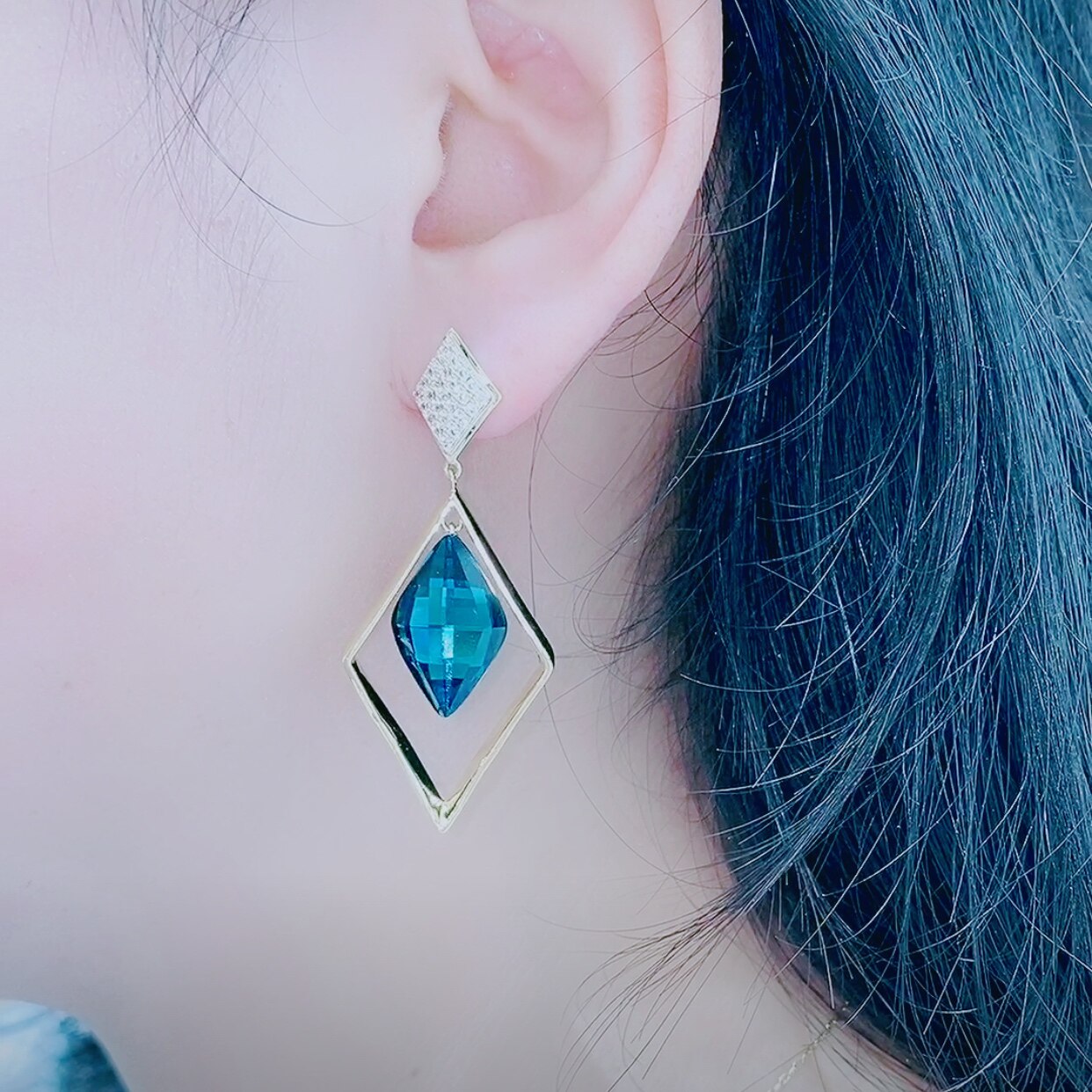 South Korea Dongdaemun s925 silver needle geometric diamond earrings female temperament net red crystal ear needles high-end earrings
