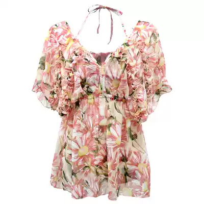 Sexy bikini flat corner thin Belly Belly steel support gathered retro printed blouse Super Fairy Hot Spring swimsuit three-piece set
