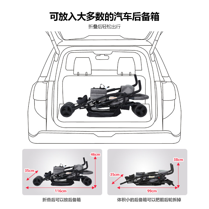 American Kinderwagon twin baby stroller Two-child artifact size child lightweight can sit and lie can be replaced