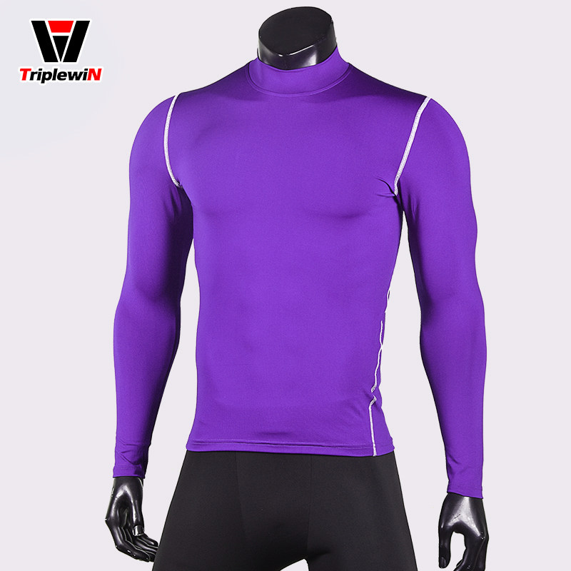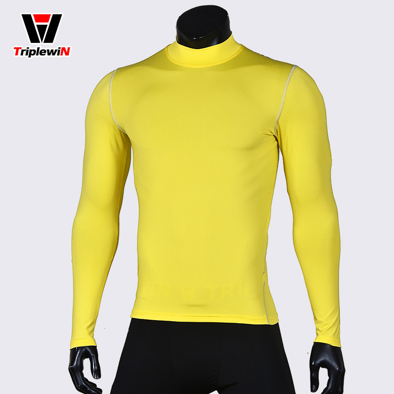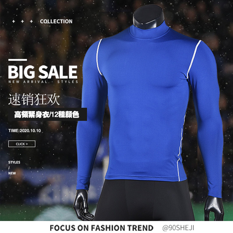 Thick quick-dry warm stretch base fitness clothes football long sleeve T-shirt men's sports round neck high neck tights