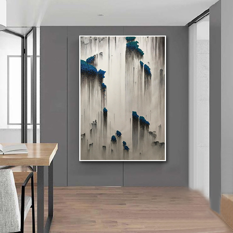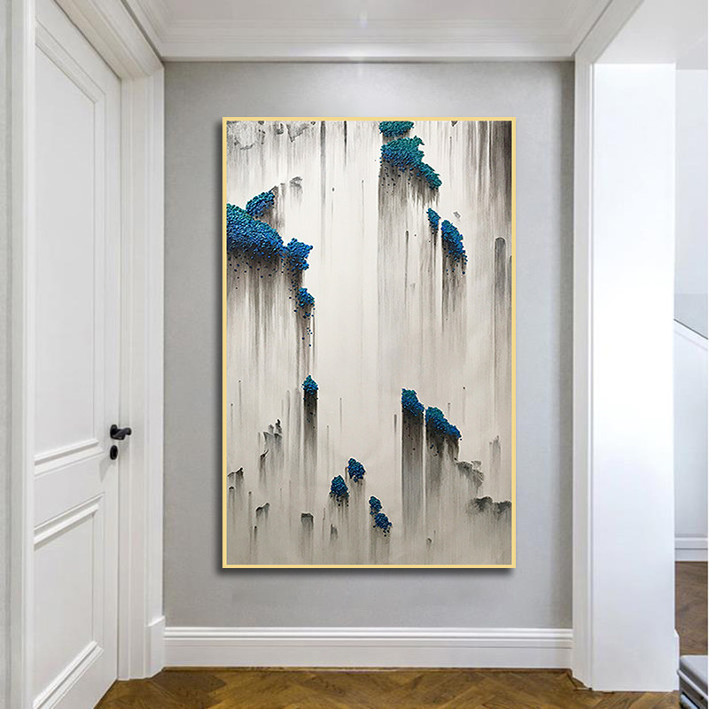 New Chinese style porch decoration painting light luxury corridor end mural vertical version model room living room sofa background wall painting