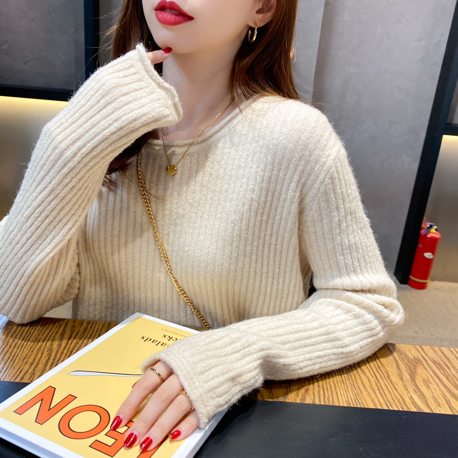 Crew neck sweater women loose outer wear 2022 new popular knitted all-match top spring autumn winter bottoming shirt inner wear