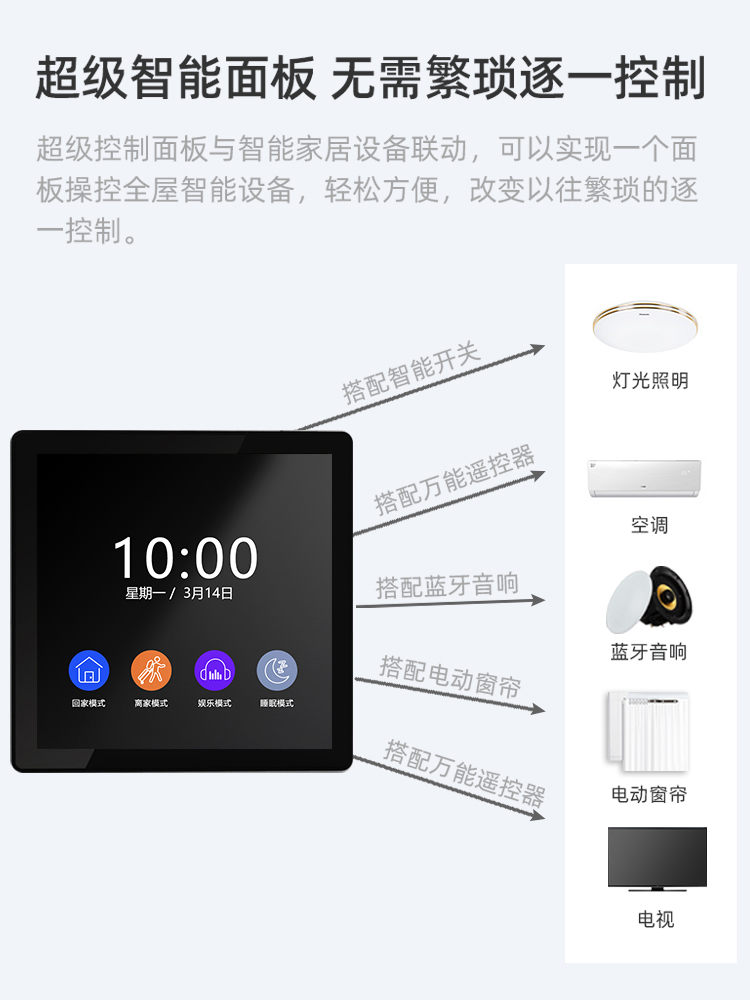 4 inch super panel (voice control version) 4 inch super panel + 2 Bluetooth speaker smart screens (situation + voice control + gateway)
