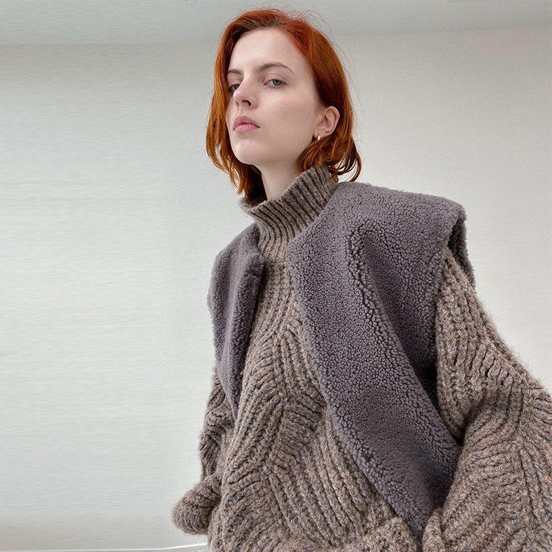 Open strong push wool perforated fluffy warm lantern sleeves half turtleneck large sweater loose top