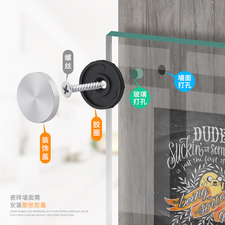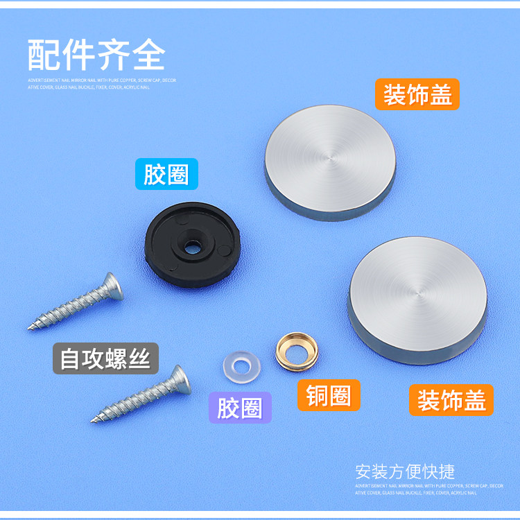 Screw mirror nail decorative cover acrylic Advertising nail stainless steel decorative nail fixing nail glass full set screw lid type nut
