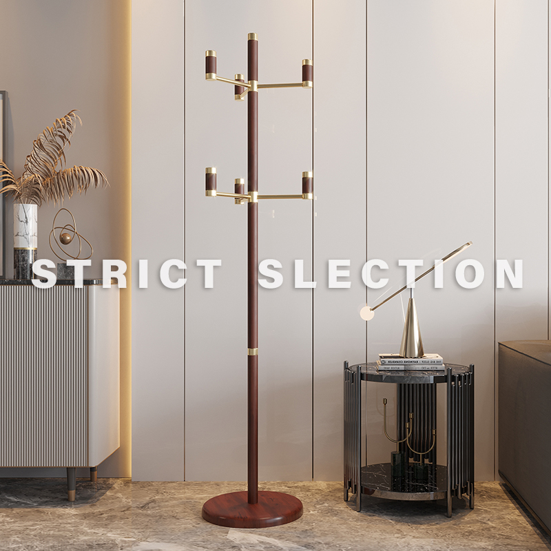 U Home|Light luxury new Chinese style solid wood coat hanger floor-to-ceiling bedroom household storage copper wood medieval coat rack