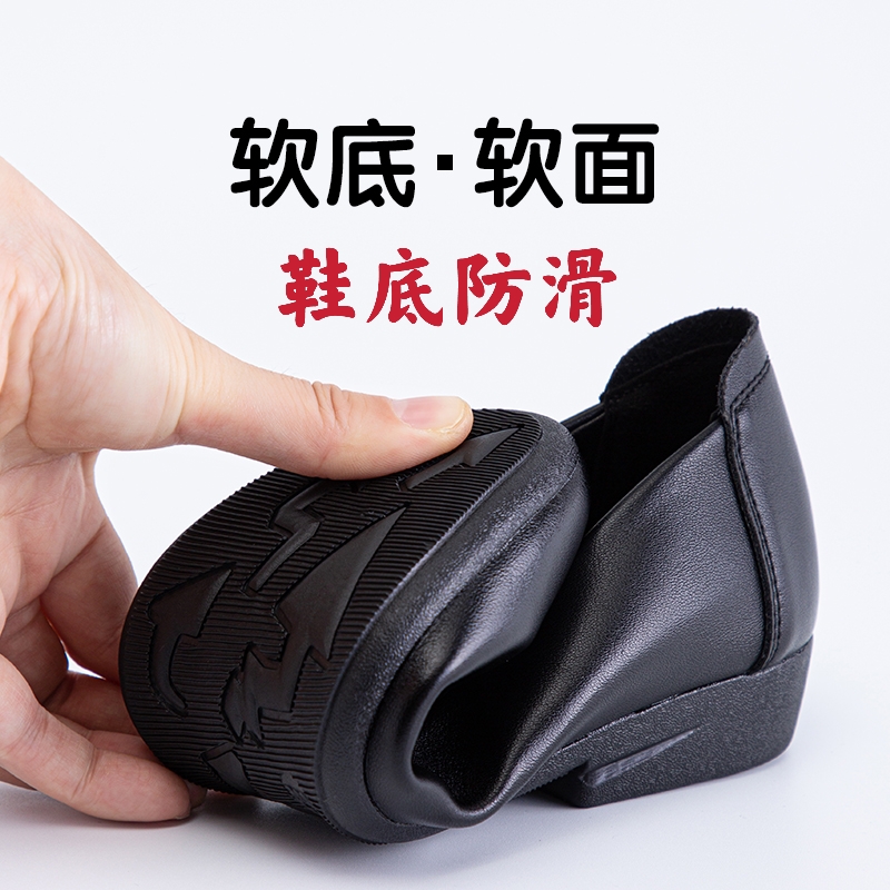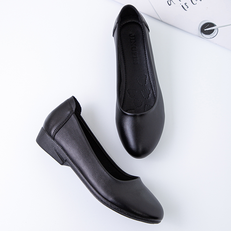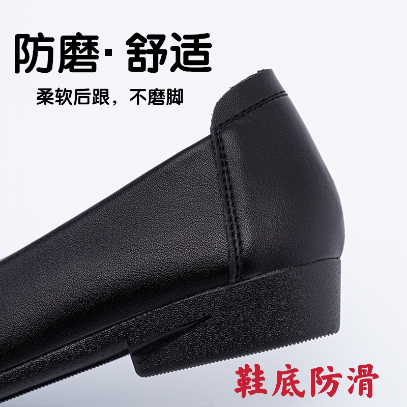 Work shoes women's black soft-soled work shoes professional work leather shoes interview stewardess shoes comfortable non-slip hotel flat bottom