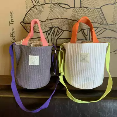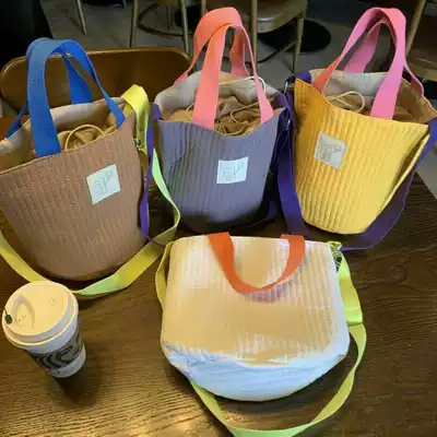 Japan ins cute hand bag portable messenger solid color canvas mommy bag lightweight insulation bento bag