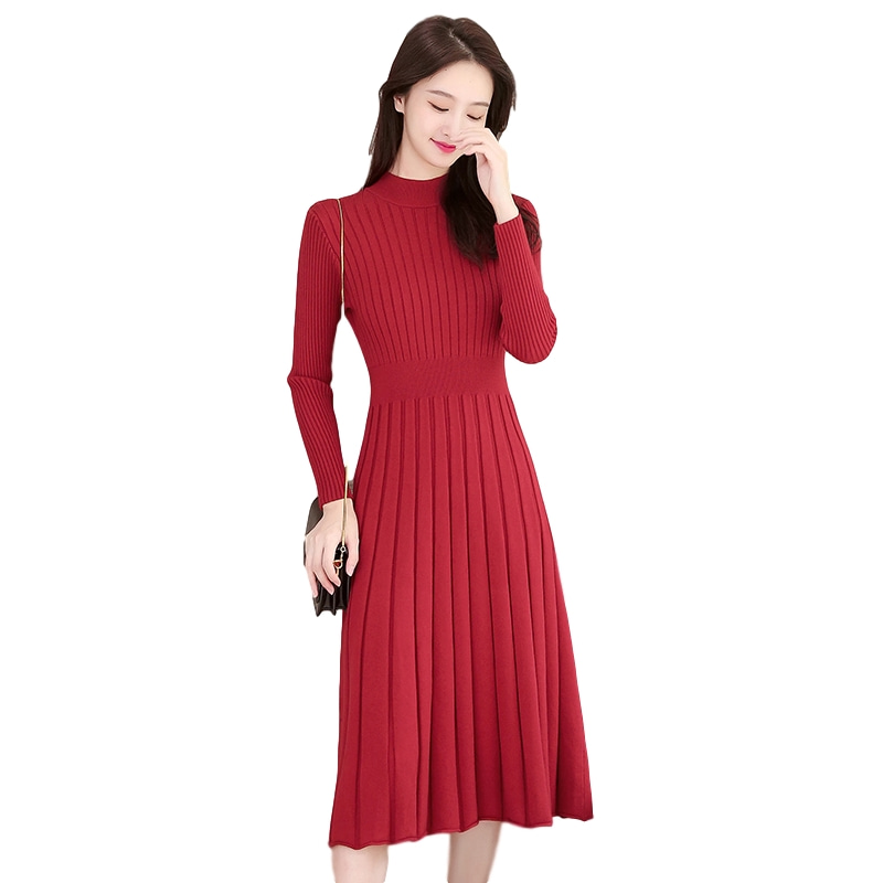 Half turtleneck knitted dress 2022 autumn and winter new waist and thin super fairy goddess mid-length red sweater dress