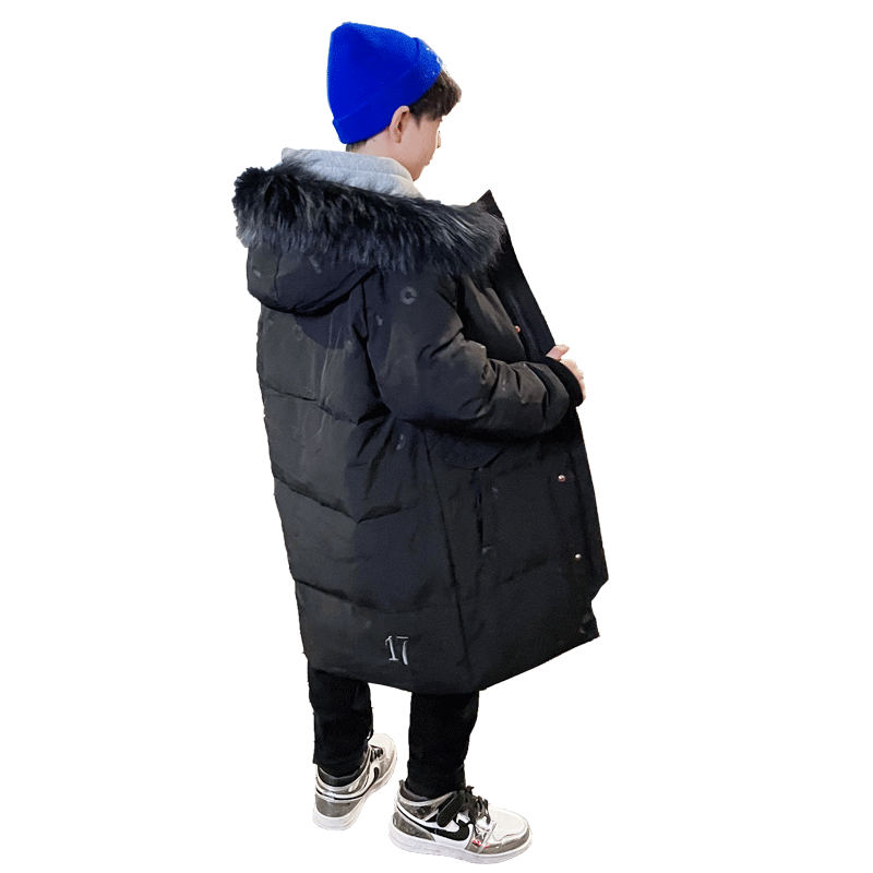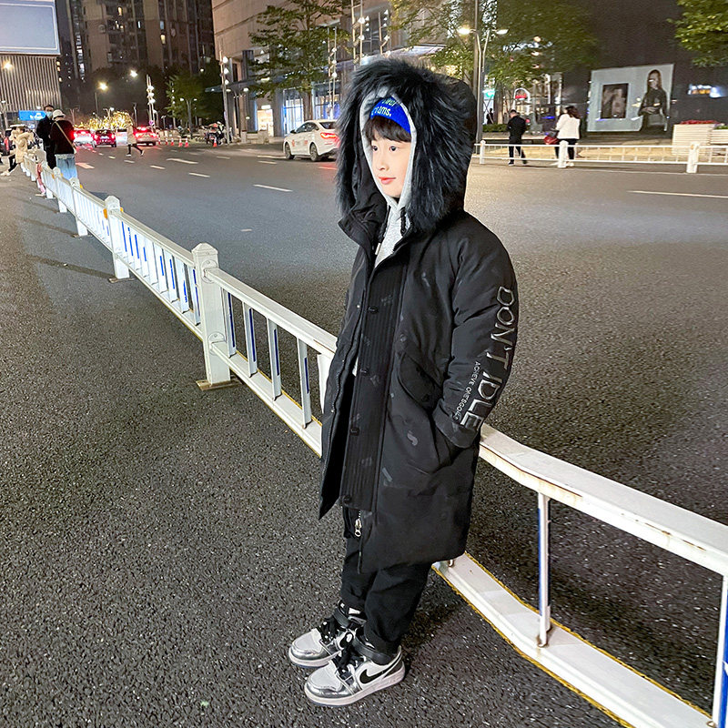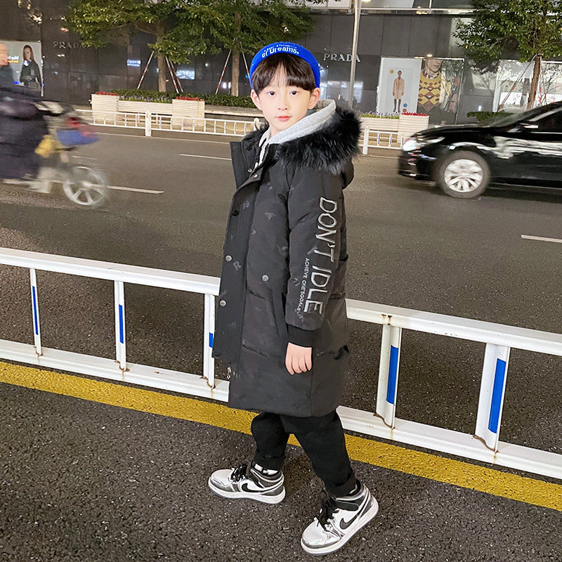 Boy's down clothes 2021 new children's mid-length version of cotton clothes CUHK Thickened Cotton Clothing Korean Version Coat Tide