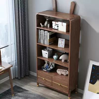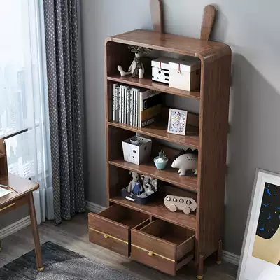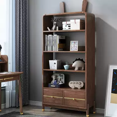 New Chinese style solid wood children's bookshelf Walnut light luxury study storage storage simple floor-to-ceiling bookcase for primary school students