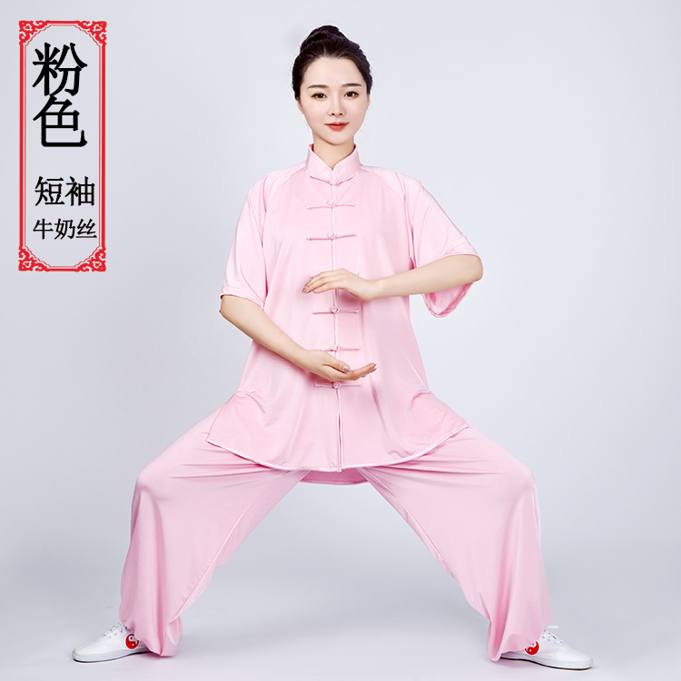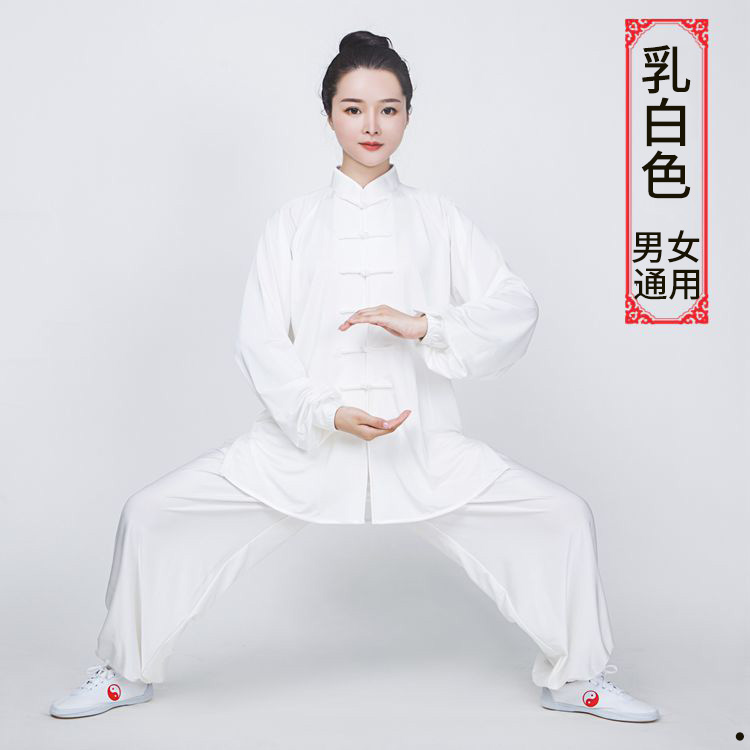 Elastic milk silk Tai Chi clothing women's long-sleeved spring and autumn middle-aged and elderly practice clothing Baduanjin martial arts performance boxing clothing men's summer