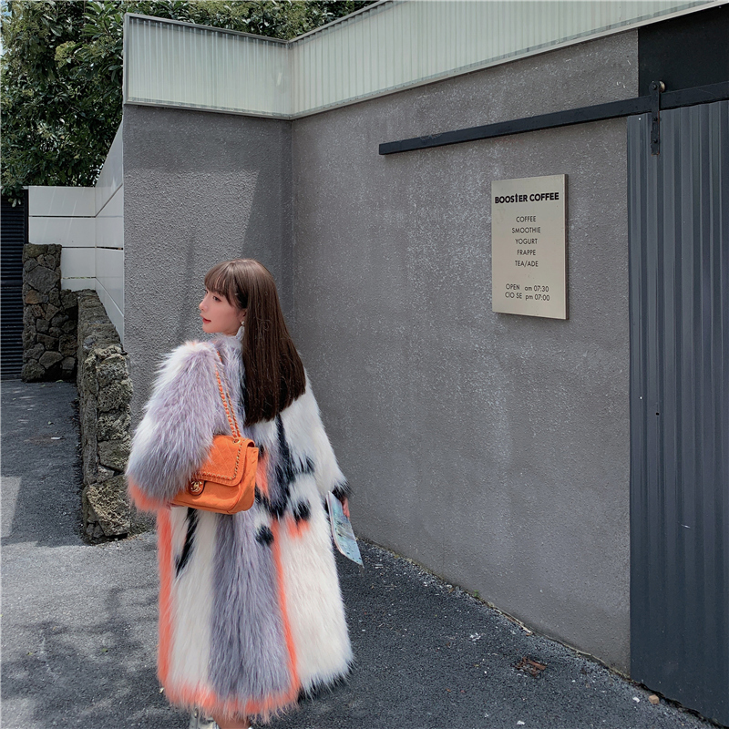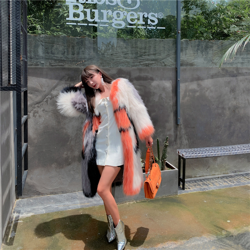 2022 new trendy catwalk big brand raccoon fur woven fur mid-length fox fur coat women's autumn and winter coat