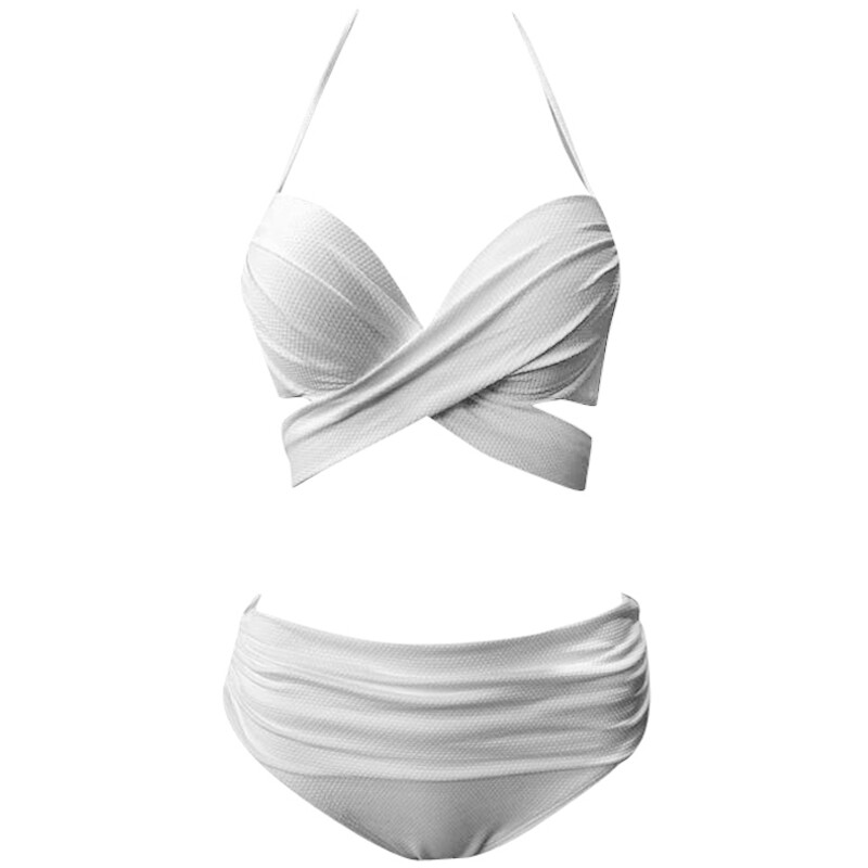 South Korea INS Xiaohongshu sexy island vacation style white bikini three-piece set small chest steel support gather swimsuit