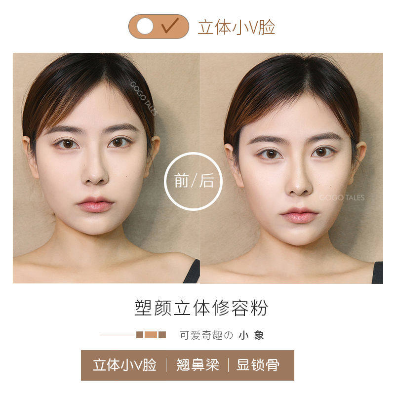 Gogo dance gogo tales small elephant soft mist three-dimensional repair plate shadow side nose shadow hairline powder small face thin