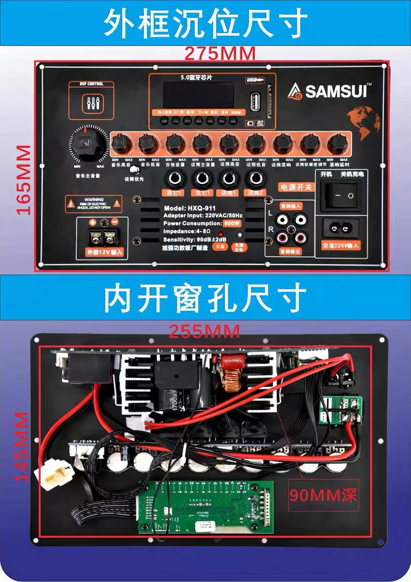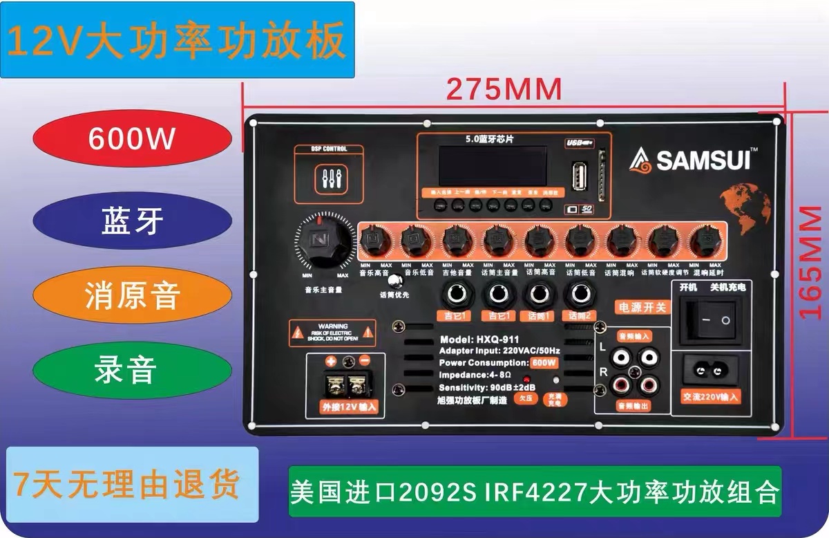 12V battery 220V high-power square dance bluetooth power amplifier board portable lever mobile speaker power amplifier board 8 ohms